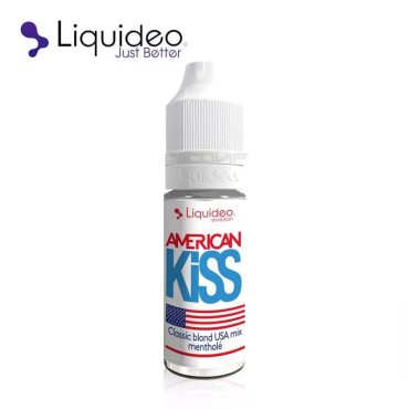 Cet e-liquide fusionne des arômes de type classic à une touche mentholée, en combinant les profils de l’American Mix et du Kiss Full. L’American Kiss est proposé par la marque française Liquideo.