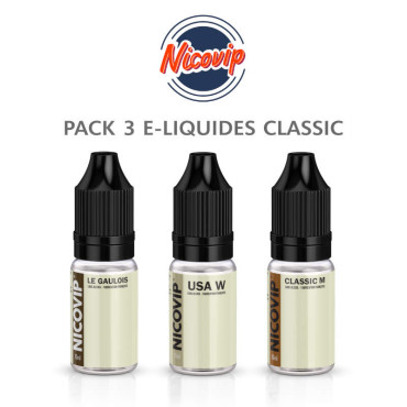 Ce pack 3 E-liquides Classic Nicovip pour cigarette électronique réunit trois références majeures de la gamme classic par la marque française Nicovip.