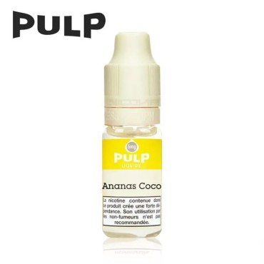 Voici un e-liquide de Pulp offre un duo d’ananas et de noix de coco. Il est présenté en flacon avec une composition combinant ces deux saveurs.